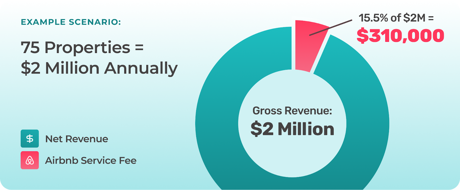 Let's make that concrete. If you're managing 75 properties generating $2 million in annual revenue from Airbnb bookings, that's $310,000 going to Airbnb each year. For most vacation rental businesses, this margin loss is significant.