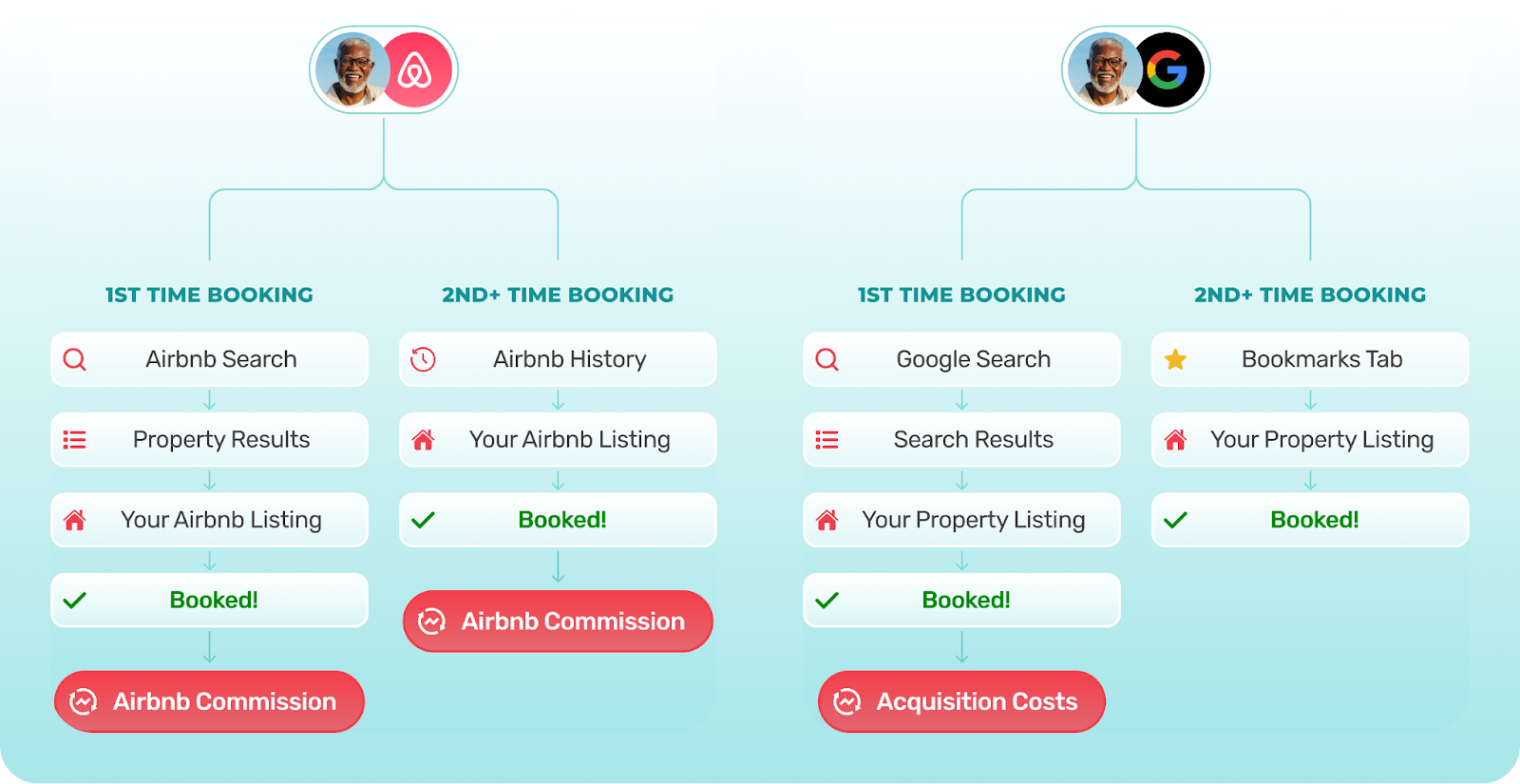 In other words, a guest who books with you three times via Airbnb represents three separate commission payments, when you could have only paid once to acquire them directly.